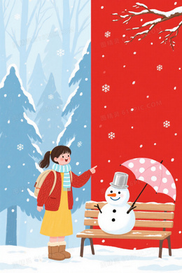 红蓝双色手绘冬日雪景背景