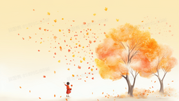 > 水彩手绘纷飞落叶风景插画