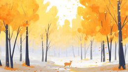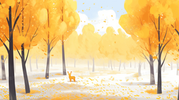 秋天金色树林落叶纷飞风景插画