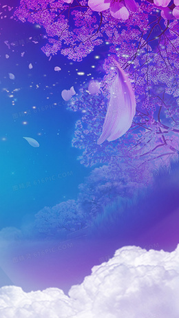 小清新紫色梦幻花瓣PSD分层H5背景素材