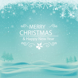 > 蓝色冬季雪原圣诞贺卡矢量背景