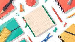 彩色手绘开学季文具平铺插画