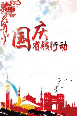 十一国庆卡通油画风天安门长城欢度国庆背景