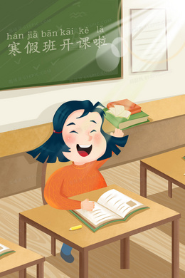 卡通寒假补习班手绘背景设计