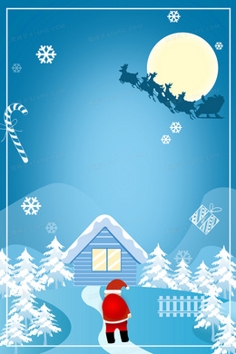 圣诞节圣诞夜雪屋圣诞老人小清新背景