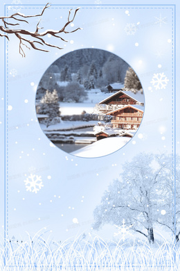 二十四节气大雪小雪卡通雪人雪屋雪景背景