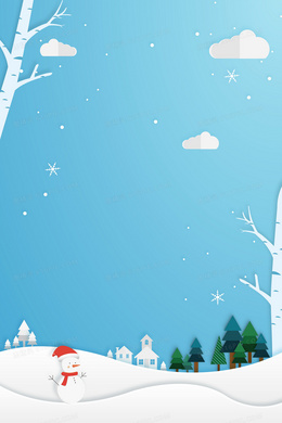 冬天小清新雪人雪屋寒冷冬季手绘插画背景