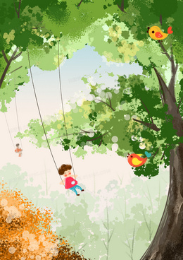 中国传统24节气春分树木手绘插画海报