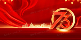 红金党政党建立体73周年文字金色城市背景