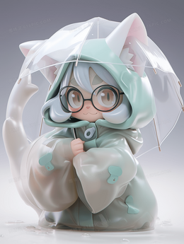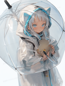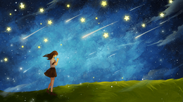 > 夏夜唯美卡通女孩小动物夜晚划船背景