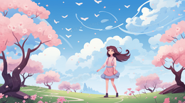 夏夜唯美卡通女孩小动物夜晚划船背景