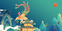 > 创意手绘国潮中国风凤凰背景
