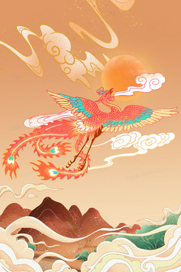创意手绘国潮插画凤凰浴火重生火凤凰背景