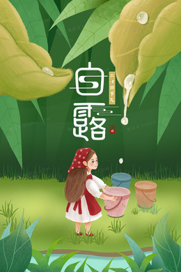 二十四节气白露女孩接露水插画海报