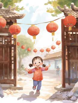 当前位置: 图精灵 > 背景图库 > 插画 > 在老家过年快乐玩耍的小女孩插画