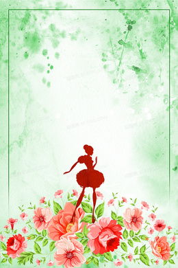 绿色插画花卉38女王节促销海报背景