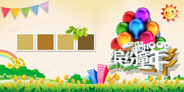 卡通手绘幼儿园照片墙缤纷童年彩旗海报背景