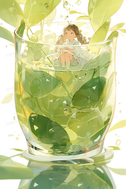 透明的玻璃茶杯中的可爱女孩虚拟插画