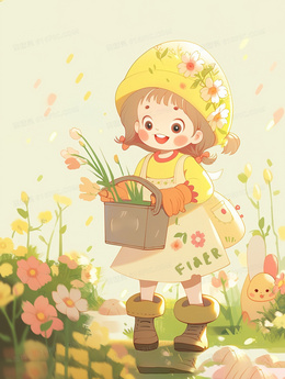 当前位置: 图精灵 > 背景图库 > 插画 > 种植鲜花的黄裙子女孩插画