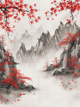 中国传统绘画风格水墨画主题