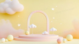 > 简约几何舞台云朵圆球背景