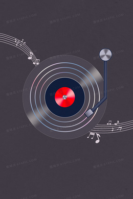 纯色手绘黑胶唱片合成背景