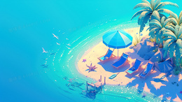 蓝天白云海边沙滩遮阳伞背景