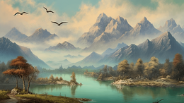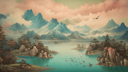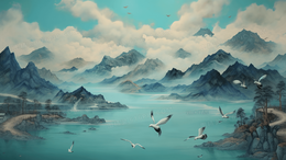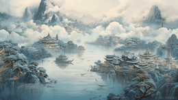 当前位置: 图精灵 > 背景图库 > 插画 > 鎏金中国风高山建筑风景插画