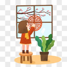 当前位置: 图精灵 > 免抠元素 > 节日元素 > 手绘插画女孩小年贴窗花元素
