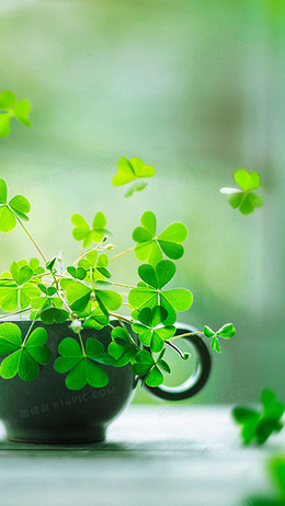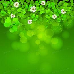 蓝色绿色手绘卡通四叶草女孩合成背景