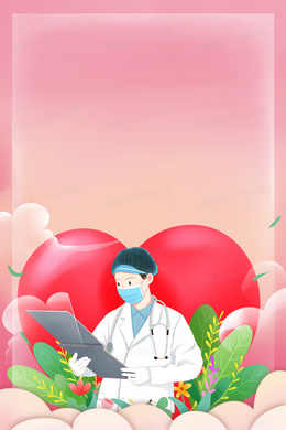 > 粉色卡通剪纸风中国医师节庆祝背景