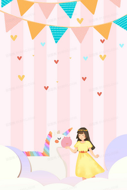 > 独角兽梦幻可爱的手绘平铺纹理背景