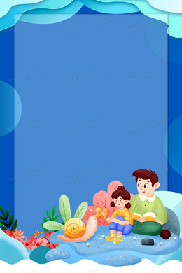 卡通父女夜晚讲故事边框背景