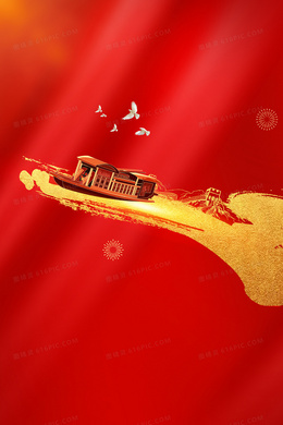 > 红船精神教育宣传党政宣传中国风卷轴背景