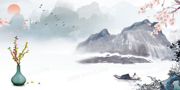 意境中国风山水瓷器背景