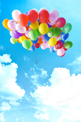 蓝天白云小清新多彩气球背景
