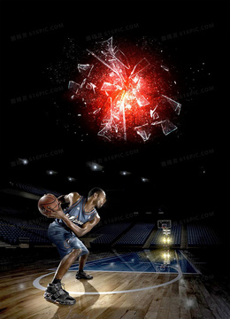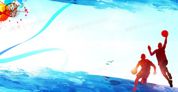 蓝色剪影篮球争霸赛海报宣传背景素材