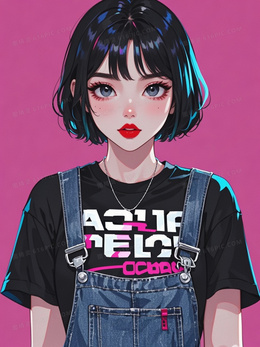 一个女孩6分身黑色t恤印有白色和玫红色字母