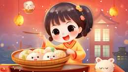 端午节可爱的小女孩和一条巨龙开心的划船游湖