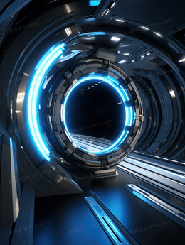 科幻未来时空隧道科技插画