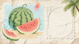 > 复古手绘风海报背景斑驳质感纸面上西瓜呈现蜡笔画笔触