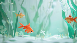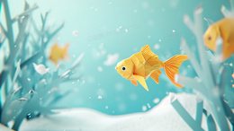 池塘水中的3D纸鱼插画