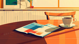 > 咖啡厅桌子上打开的书本和一杯咖啡插画