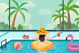 夏日游泳池女孩避暑插画海报