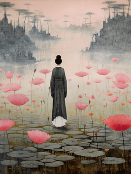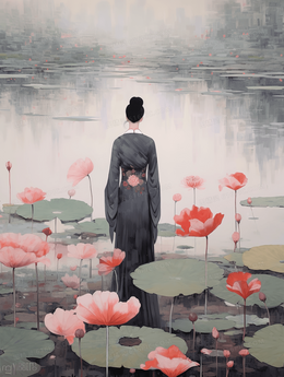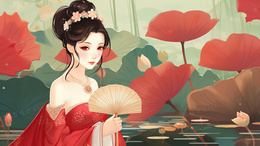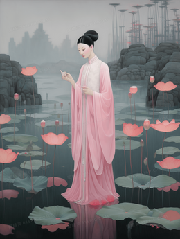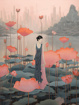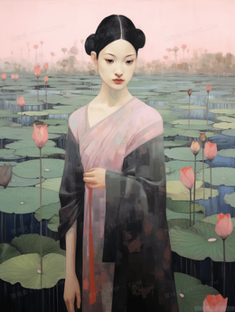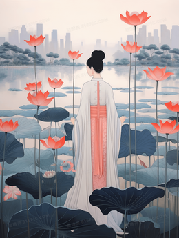 当前位置: 图精灵 > 背景图库 > 插画 > 中国风行走在荷叶上的古典美女风景插画