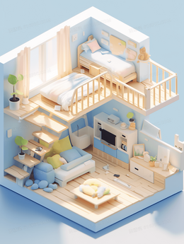 当前位置: 图精灵 > 背景图库 > 插画 > 3D立体C4D卡通家居卧室模型插画