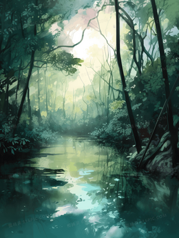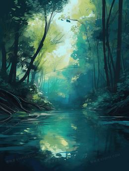 当前位置: 图精灵 > 背景图库 > 插画 > 绿色唯美森林深处风景插画