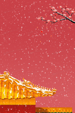红色国潮冬天雪景合成背景