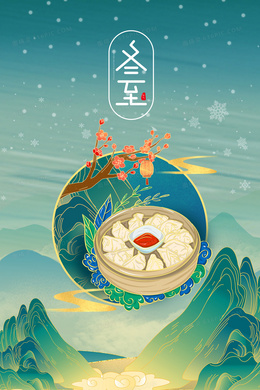 清新中国风国潮二十四节气立冬节气美食饺子背景
