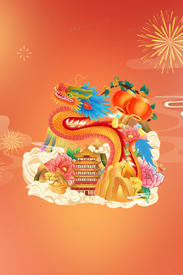 橙色国潮龙年背景